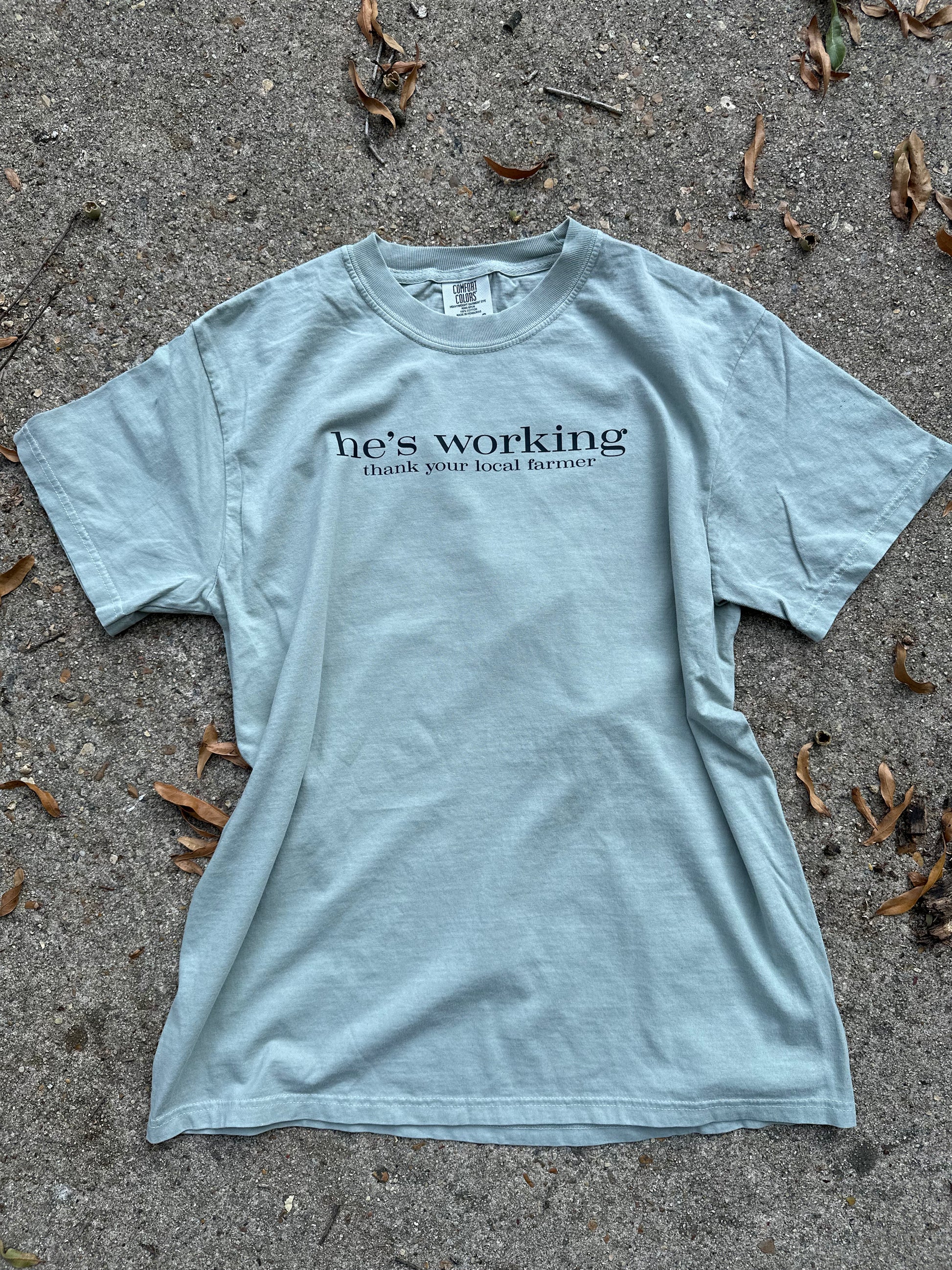 he’s working tee