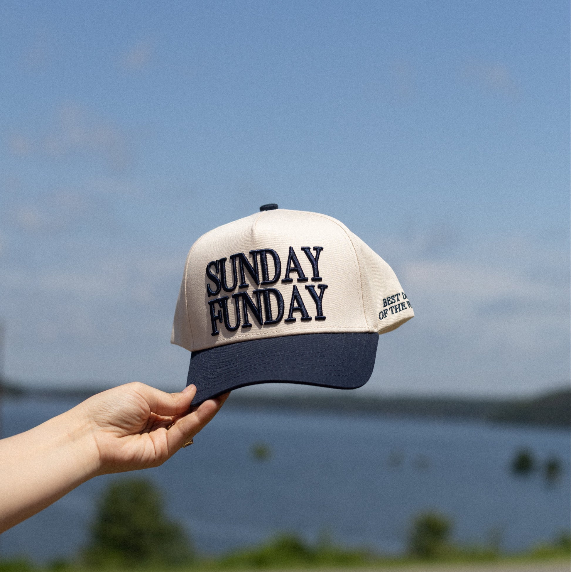 Sunday Funday all day! The perfect hat for hot summer days on the lake, golf days and more! Navy Vintage hat, with "Best day of the week" side embroidery!